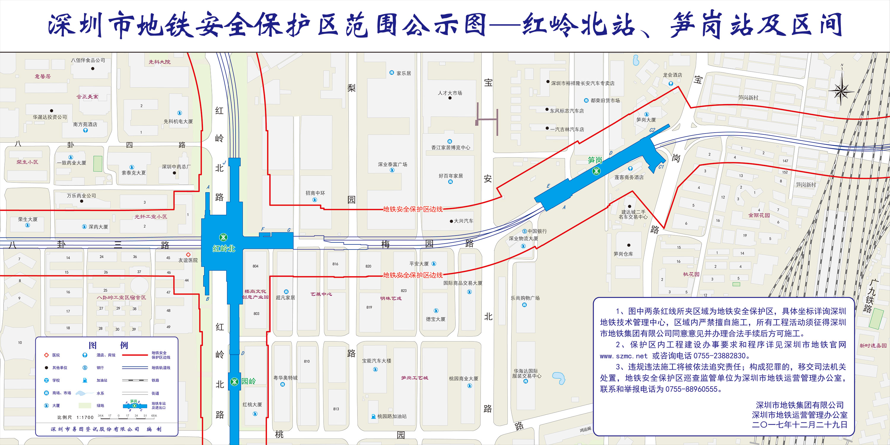 上述线路图仅对各安保区范围内单位提供线路走向参考,发生事故不减免贵司及参建各方的法律、法规和合约责任,详细地铁位置坐标须咨询深圳地铁集团有限公司技术管理中心。