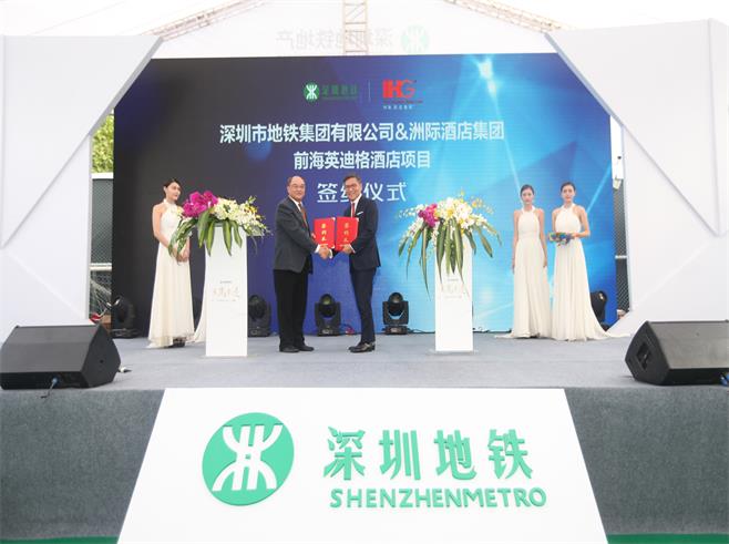 一阵热烈的掌声之后,发布会迎来重点环节——品牌商家签约,深圳地铁地产暨深圳地铁商管公司总经理张建华与迪卡侬(上海)体育用品有限公司华南大区发展总监殷珺,深圳市大生体育有限公司总经理高尚,洲际酒店集团中国南区、香港、澳门、台湾地区、大中华区营运副总裁韩锡辉一一受邀上台,一起见证深圳地铁商业品牌战略合作成果发布。这将意味着深圳地铁与迪卡侬、大生体育、洲际集团旗下英迪格酒店品牌达成战略合作,携手共进,助力深圳地铁商业的发展。